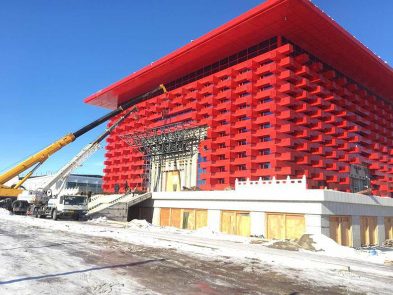 《霍爾果斯中國文化館》中國紅外墻鋁單板,在晴朗的夜色里如璀璨的百寶盒一樣奪目耀眼,在白雪覆蓋的中哈邊境上更是鬼斧神工般屹立于世人面前!更是廣州市普森建材科技有限公司的實力體現(xiàn),作為普森的一員我們?yōu)槟湴翞槟炔?愿普森的明天更美好,帶領(lǐng)我們再創(chuàng)新高和飛躍的成就。