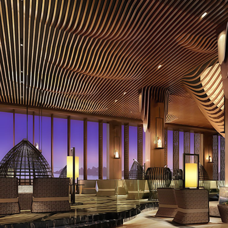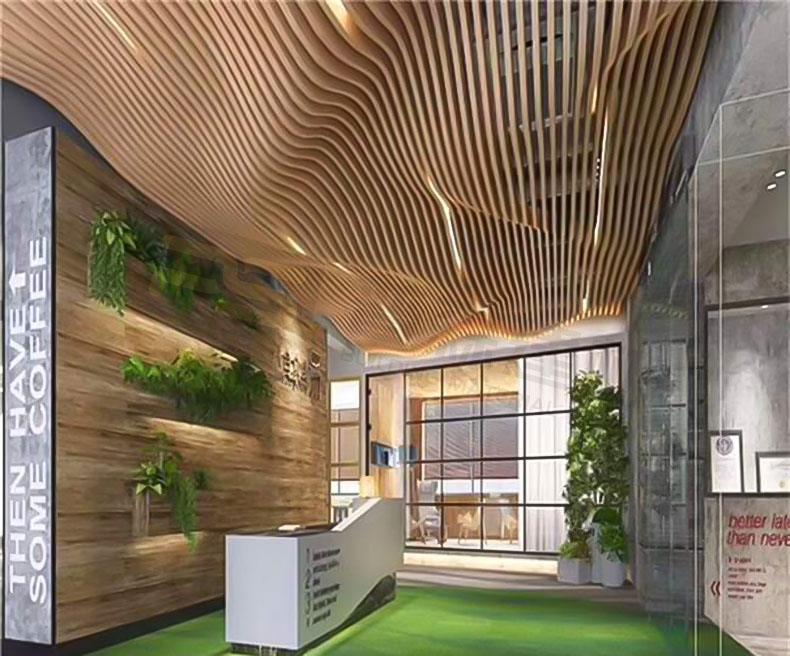 弧形木紋鋁方通吊頂