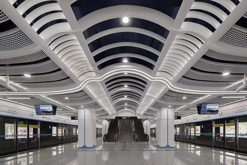 地鐵商場出口弧形鋁方通吊頂