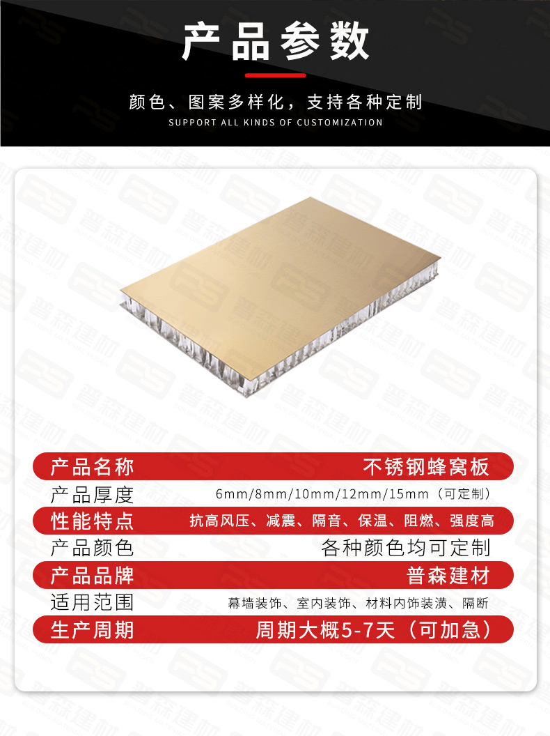 產(chǎn)品結(jié)構(gòu):不銹鋼板+鋁蜂窩芯+鍍鋅底板(鋁板)